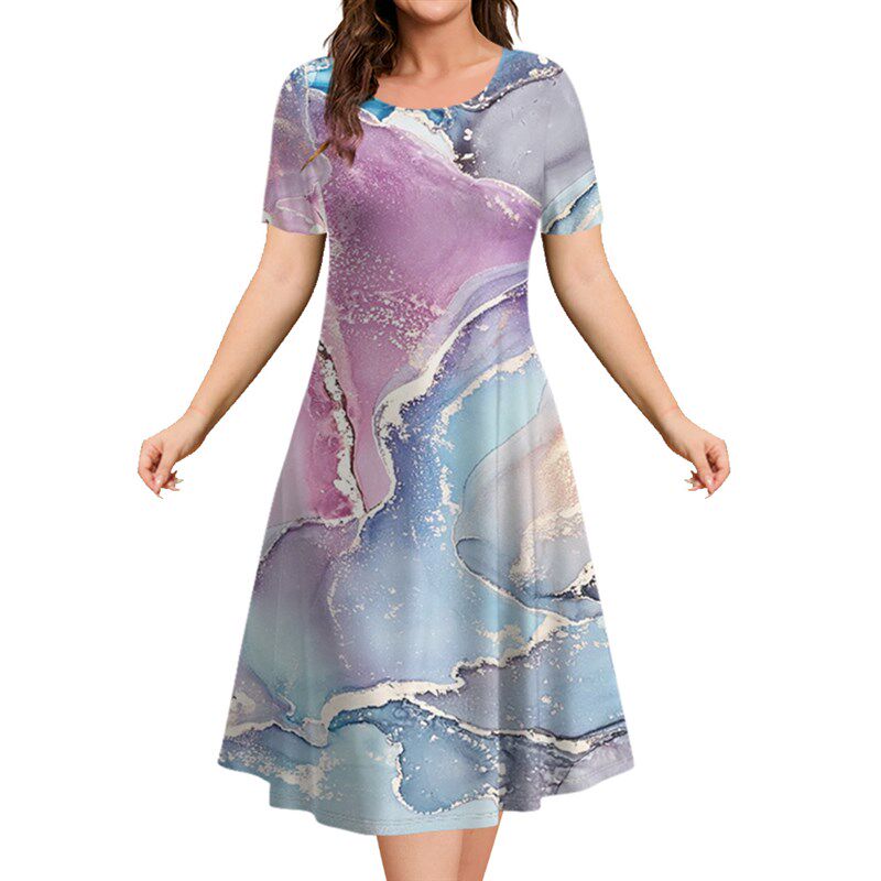 Dress Skirts Womens Sleeves Marbling Print Short Summer