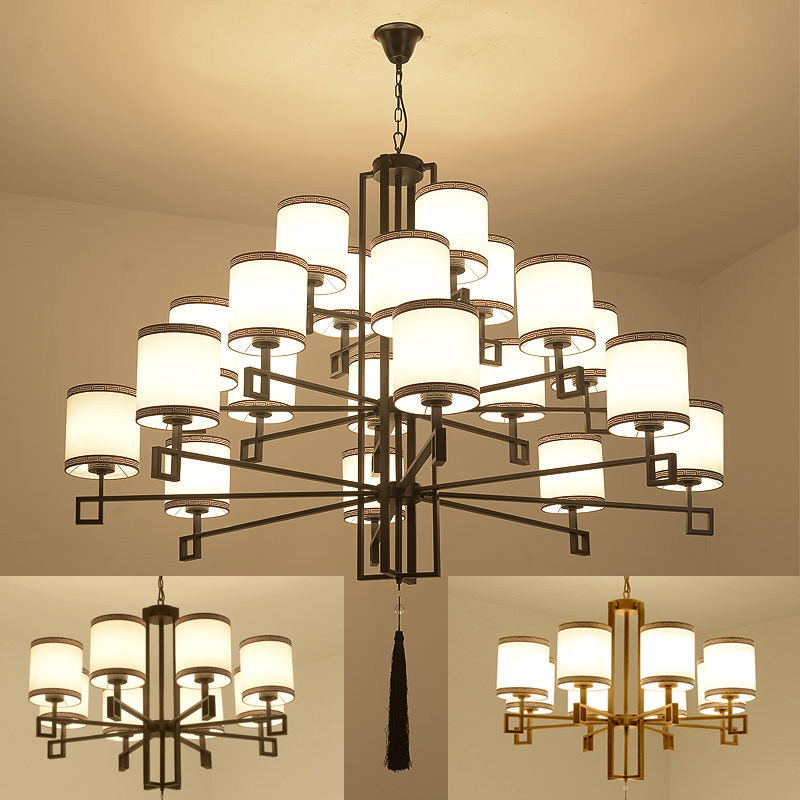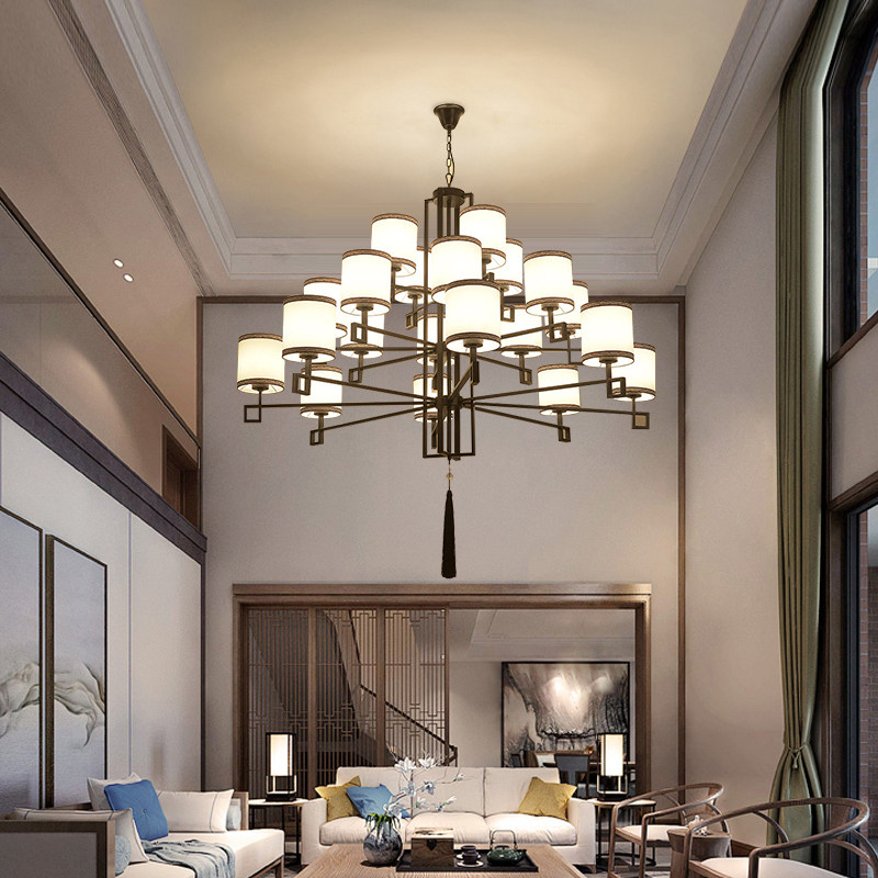 新中式 楼客厅灯具 饭店吊灯简约大气中国风酒店工程自建房餐厅复式