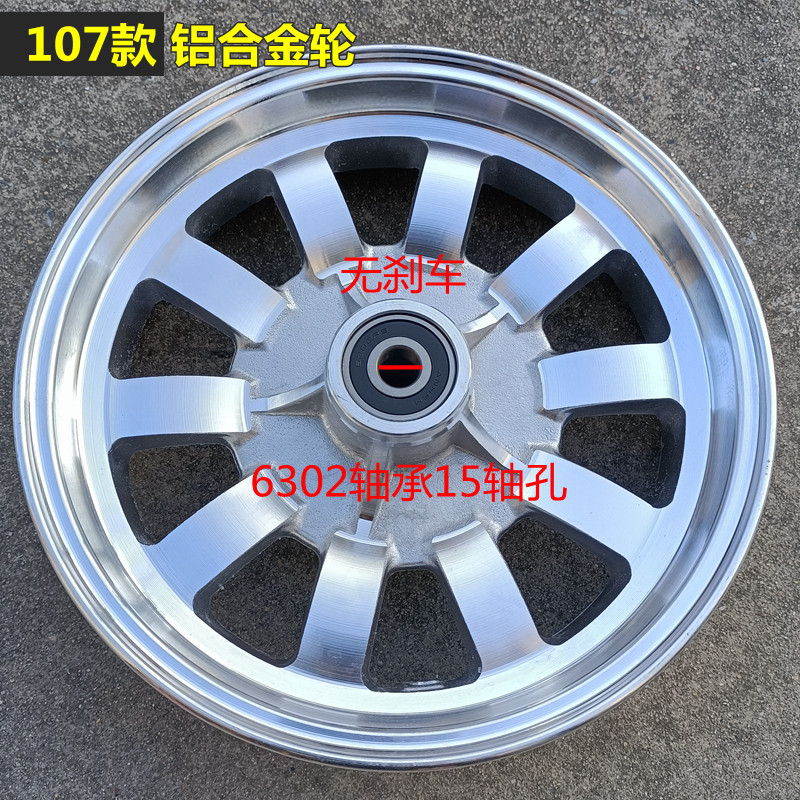 4.00 10轮毂6302轴 3.50 10寸2.5宽电动三轮车前轮铝合金圈3y.00由