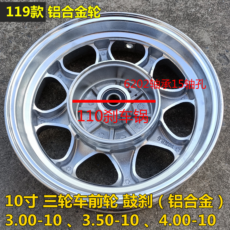 为您提供商品4.00 10轮毂6302轴 3.50 10寸2.5宽电动三轮车前轮铝合金圈3y.00的详细介绍,