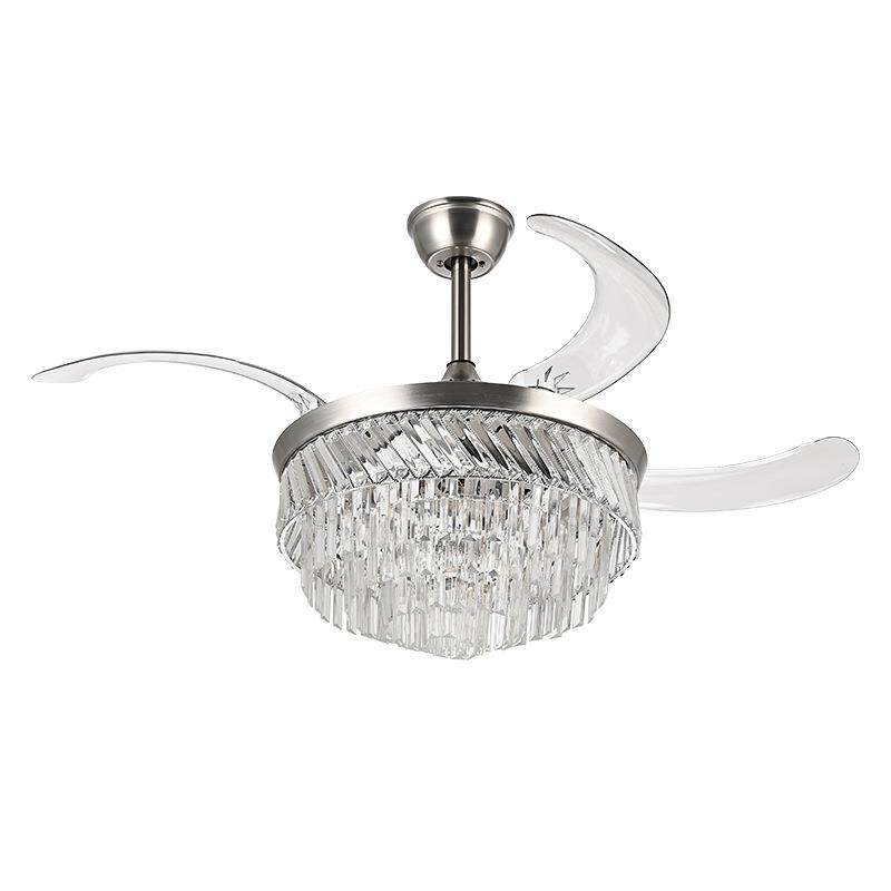 饰水晶吊扇灯外贸 客厅卧室隐形风扇灯铬色智能控制餐厅吊扇装