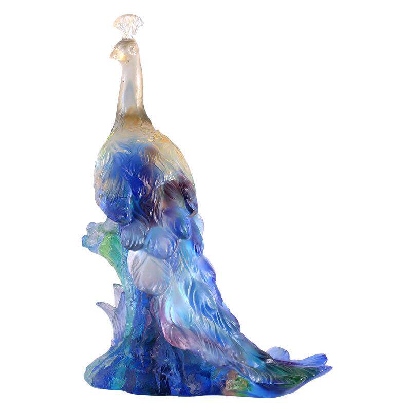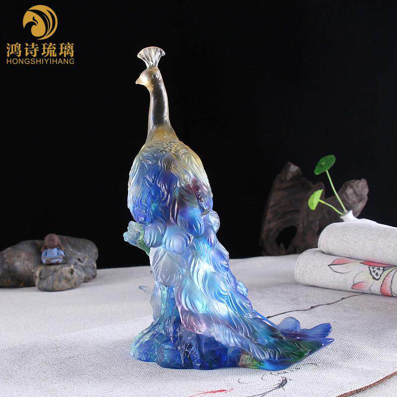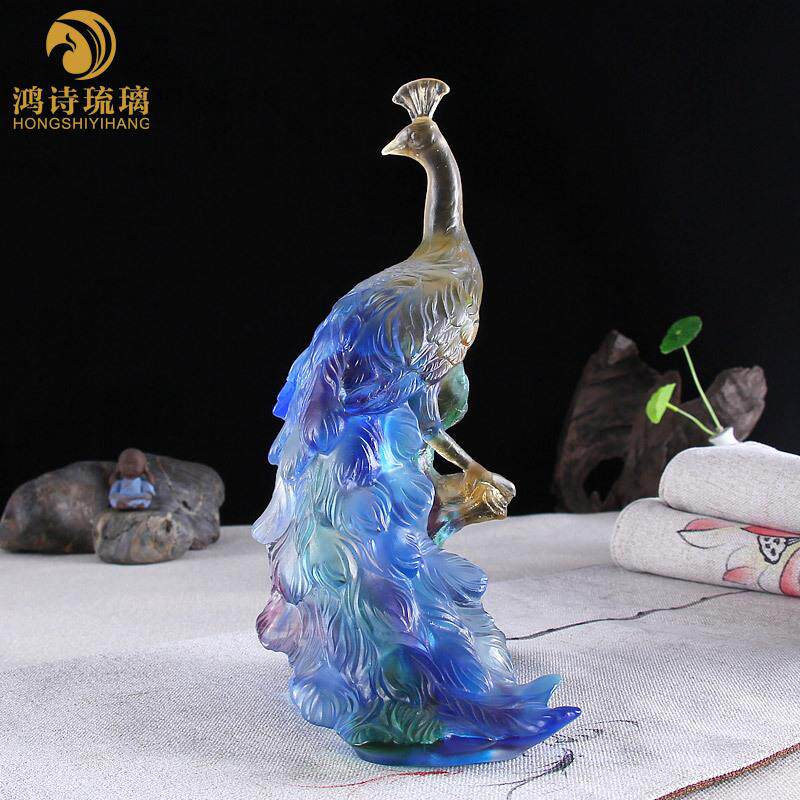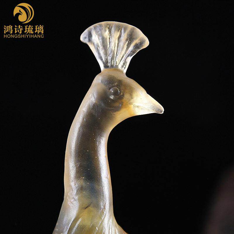 孔雀东南飞琉璃摆件创意装 饰品家居客厅办公室桌工艺品 饰摆设装