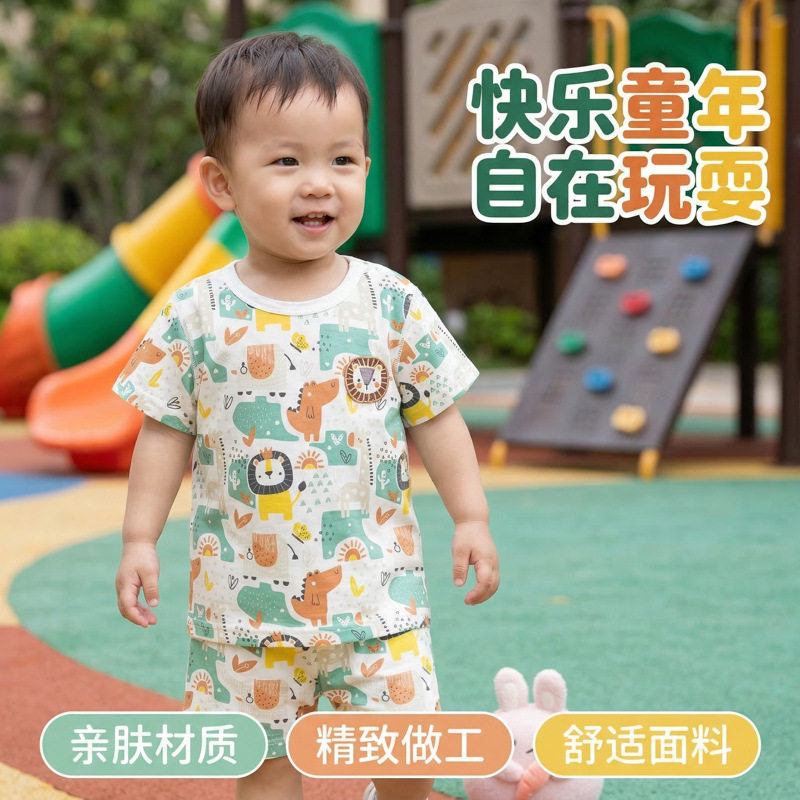 短裤 宝宝夏季 薄款 纯棉短袖 男女童透气卡通儿童居家睡衣外出服 套装由