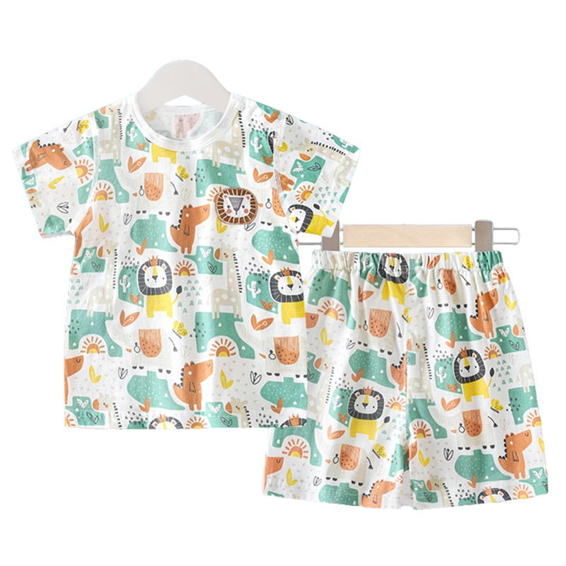 短裤 宝宝夏季 薄款 纯棉短袖 男女童透气卡通儿童居家睡衣外出服 套装
