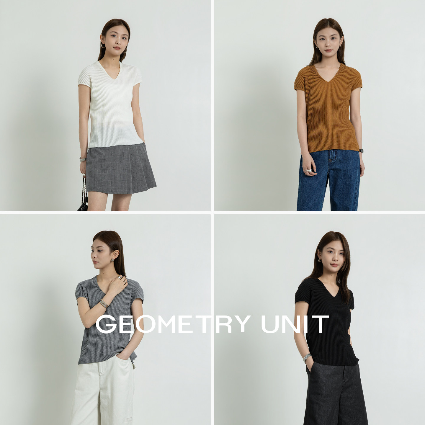 V领针织衫 几何单元 上衣 显瘦百搭羊毛薄款 女2026新款 短袖 T恤夏季