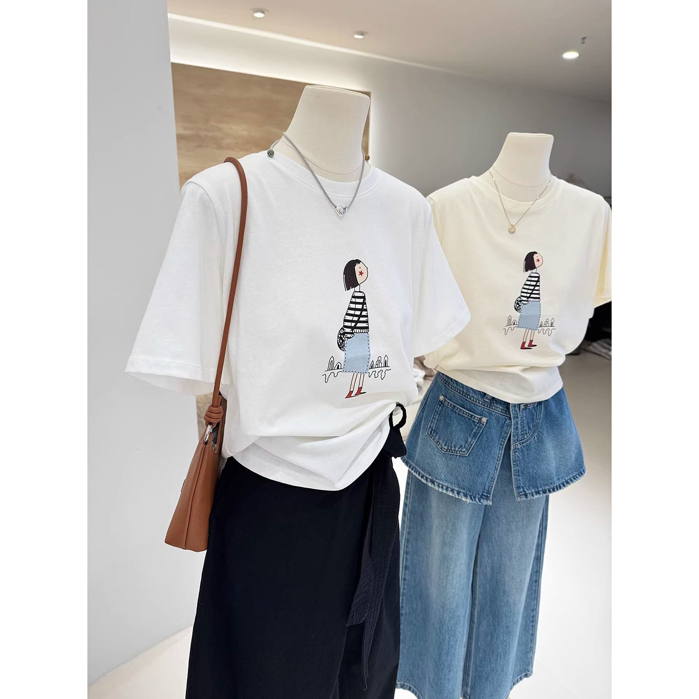 宽松纯棉半袖 女生夏日上衣PC 夏季 t恤女2026新款 雪T 雪中飞短袖