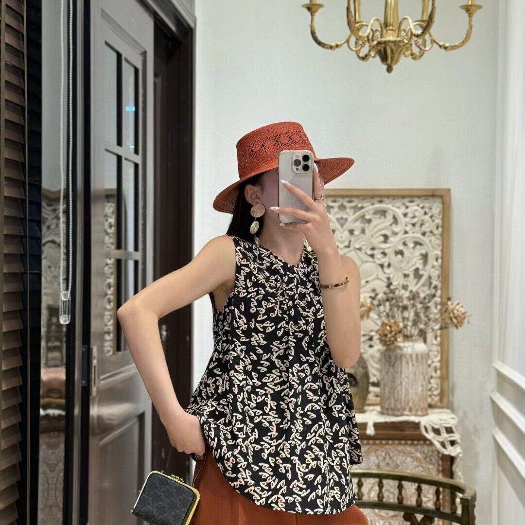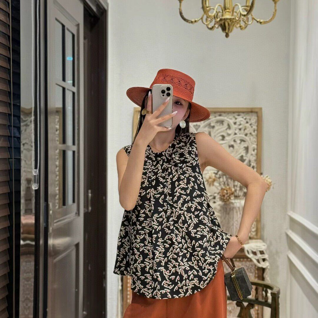 馨菲家上新复古小碎花宽松版 真丝小衫 YS382 G322 型显瘦百搭无袖