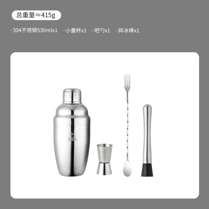 入门摇杯 304不锈钢调酒器玻璃雪克杯手摇壶鸡尾酒吧调酒工具套装