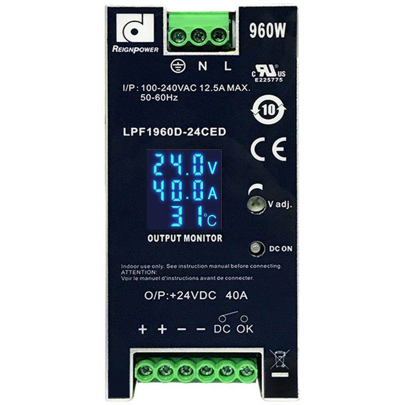 昂鼎Reignpower 24V48V大功率直流电源数显工业导轨开关电源 960W