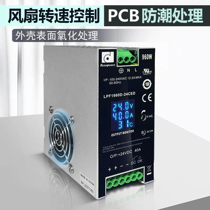 昂鼎Reignpower 24V48V大功率直流电源数显工业导轨开关电源 960W由