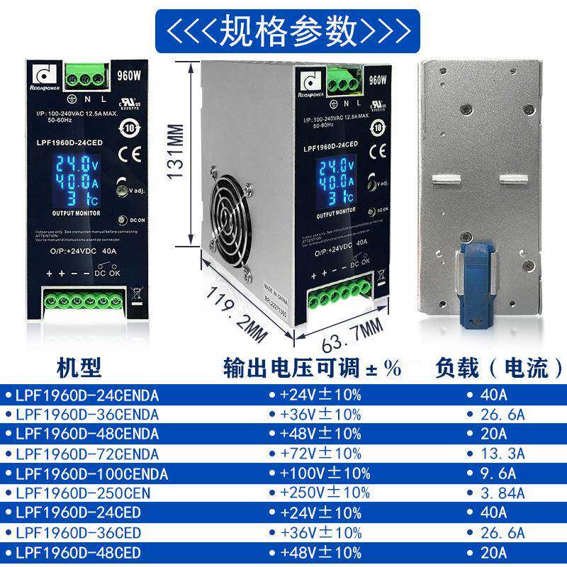 为您提供商品昂鼎Reignpower 24V48V大功率直流电源数显工业导轨开关电源 960W的详细介绍,
