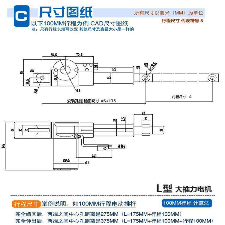6PDD1314700N直流电动推电机护电动理床升降器开窗器直杆线100m0m由