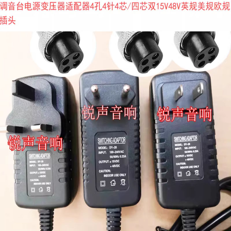 4孔 双15v变压器 4芯 四针 28调音台适配器 外置直流电源48V由