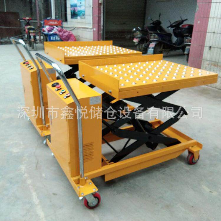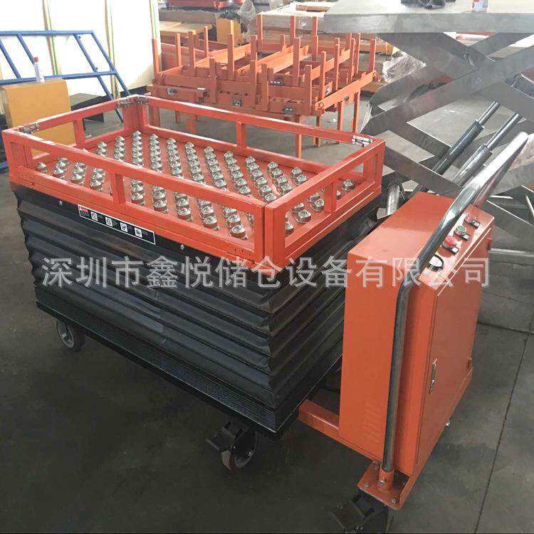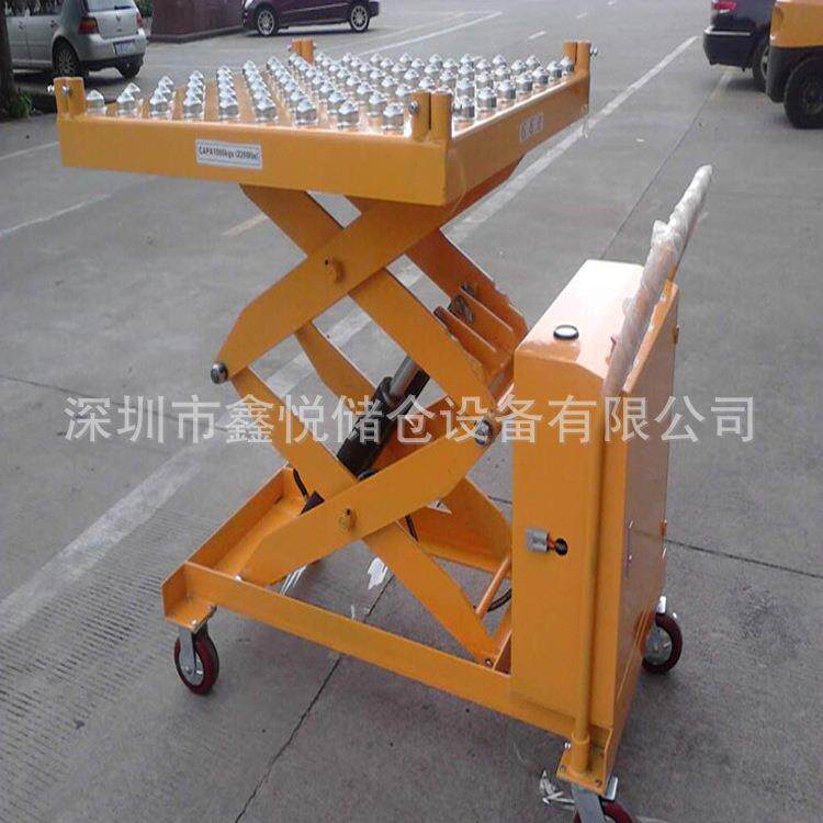 带滚珠移动电动平台车牛眼电动液压升降平台车滚筒手动升降搬运车