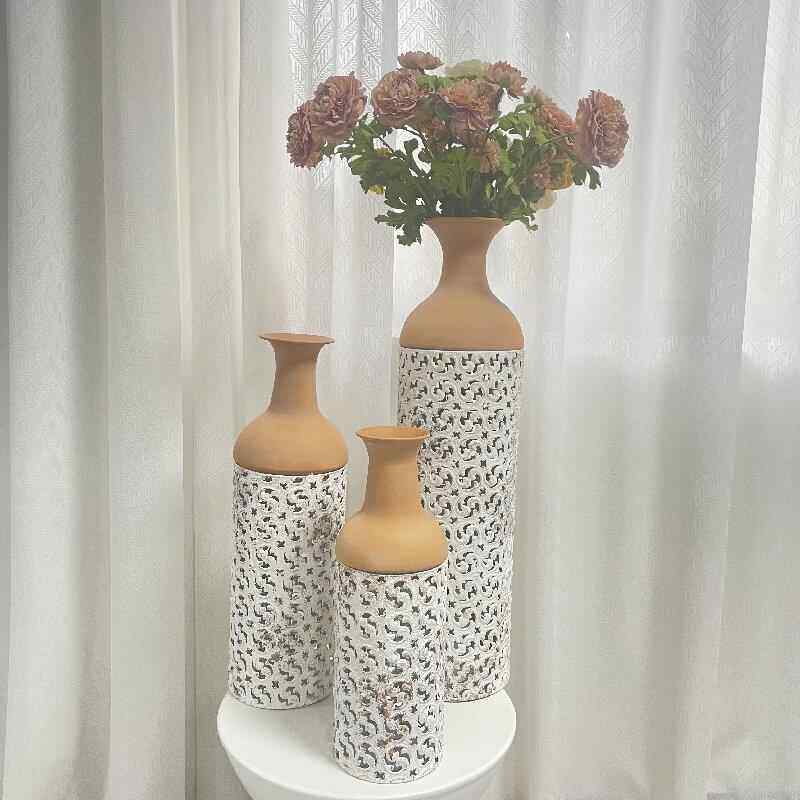 欧式 饰摆件 玫瑰插花花瓶白色简约陶瓷花器客厅餐桌干花鲜花水培装