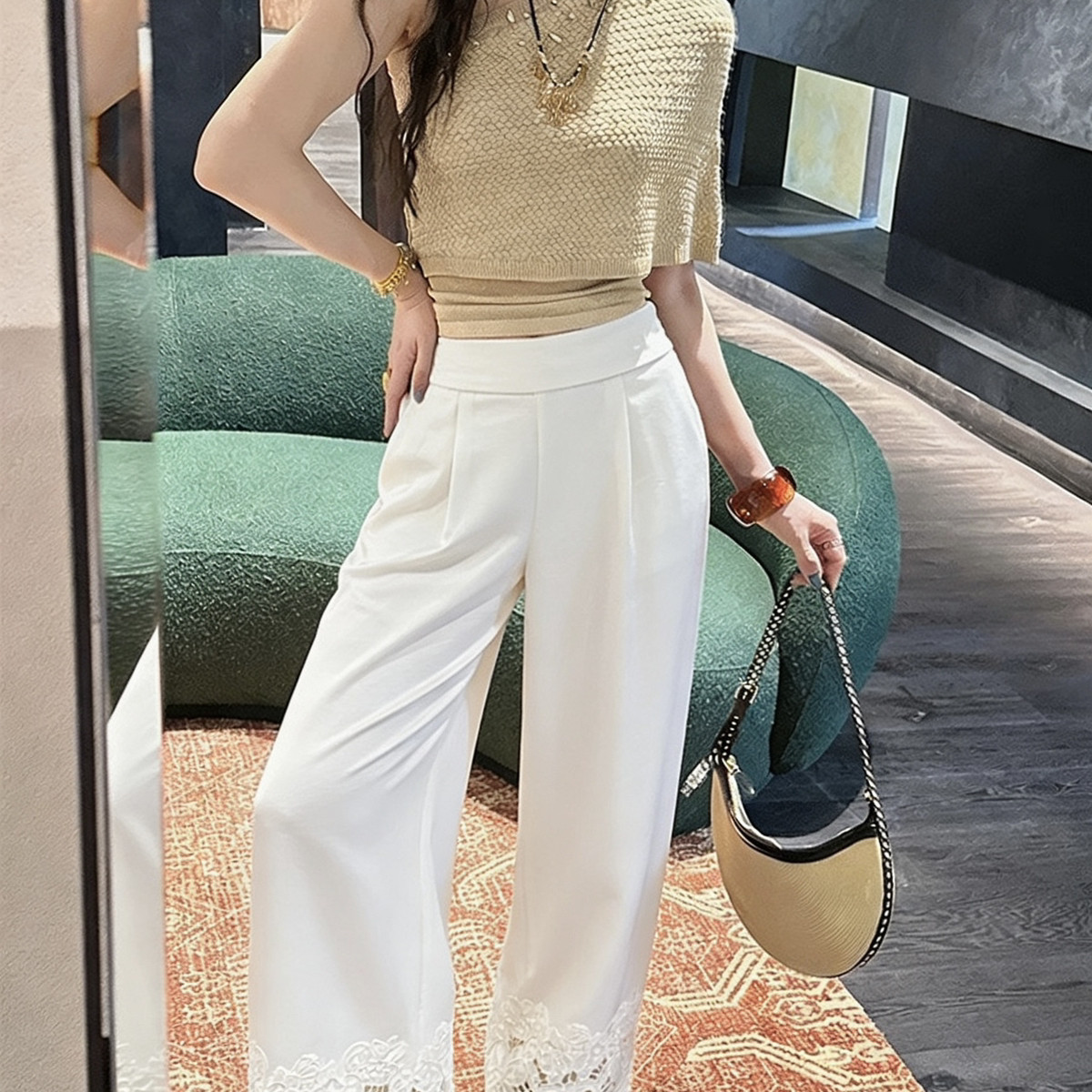 七七触感木白色醋酸蕾丝拼接花苞裤 大货速发 HH0145599 休闲裤