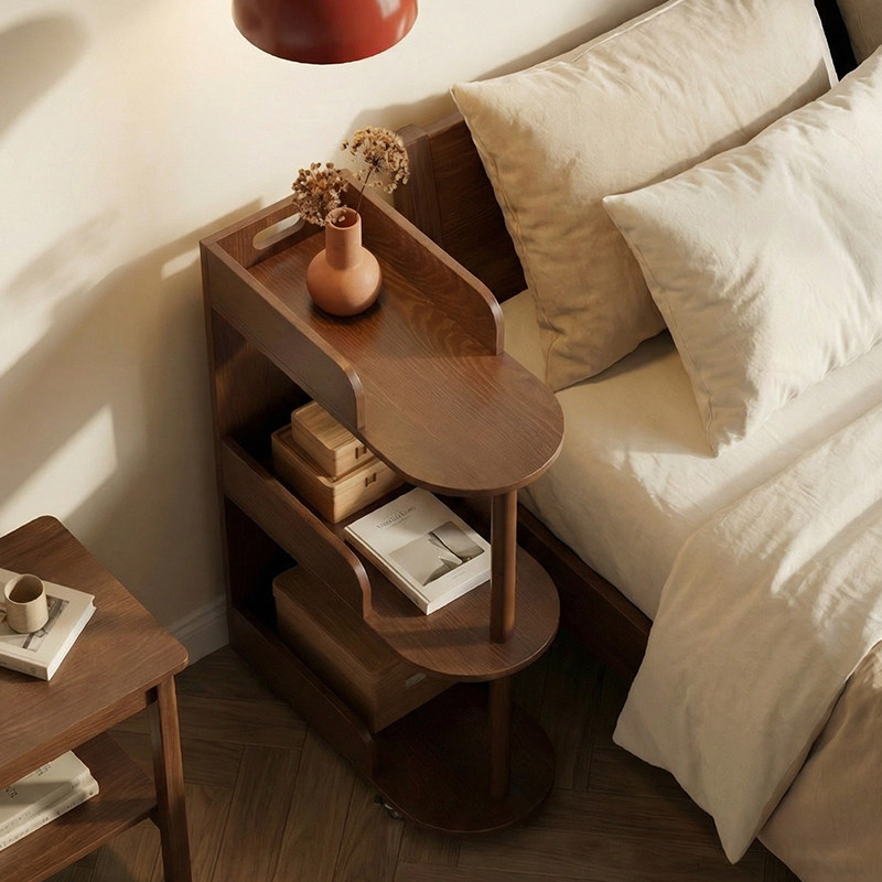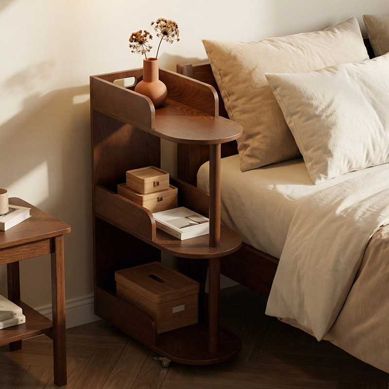 木质置物架书架落地家用可移动多层隔板陈列架靠墙零食收纳架 美式