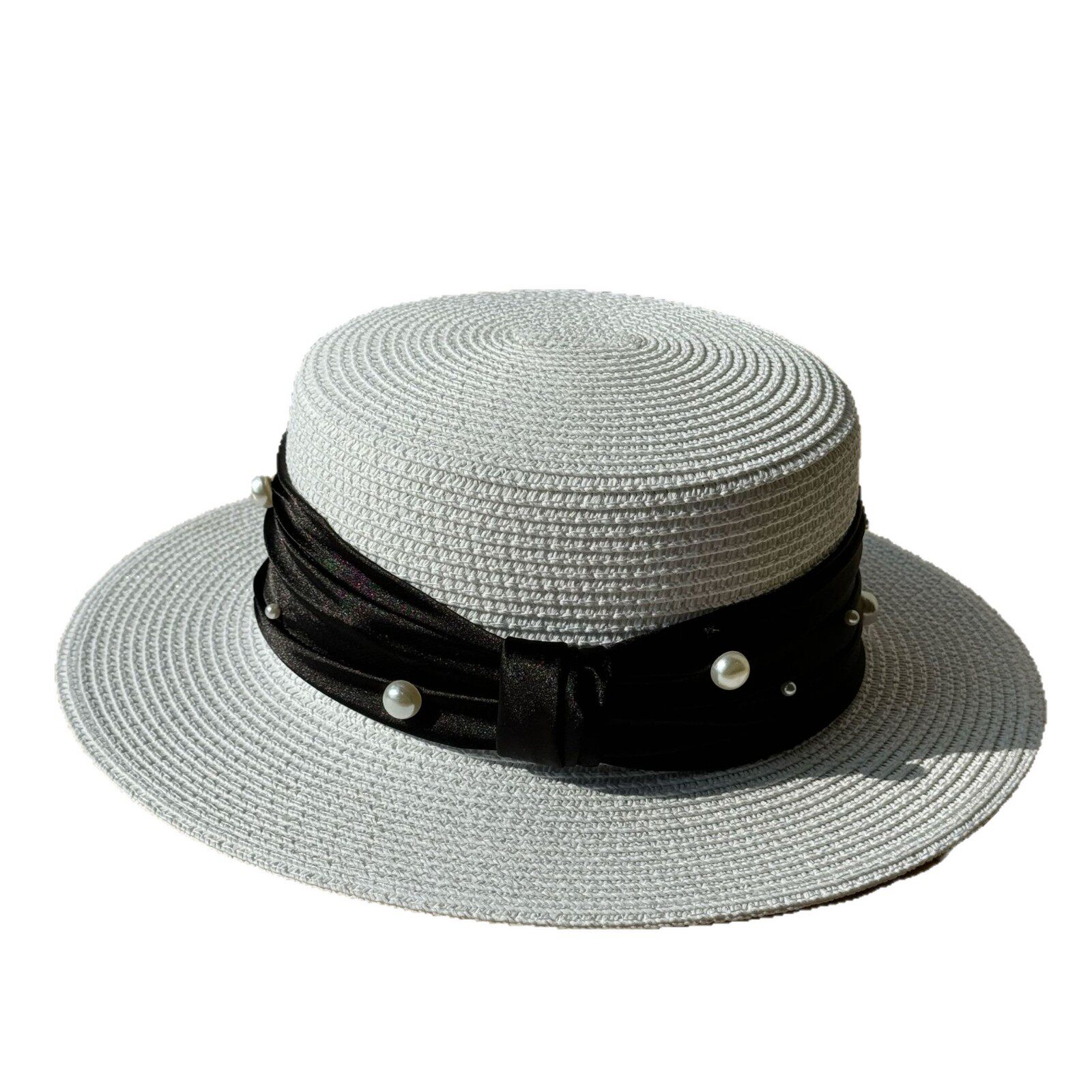 春夏季 出游防晒遮阳草编帽百搭气质 英伦珍珠平顶礼帽女款 复古法式