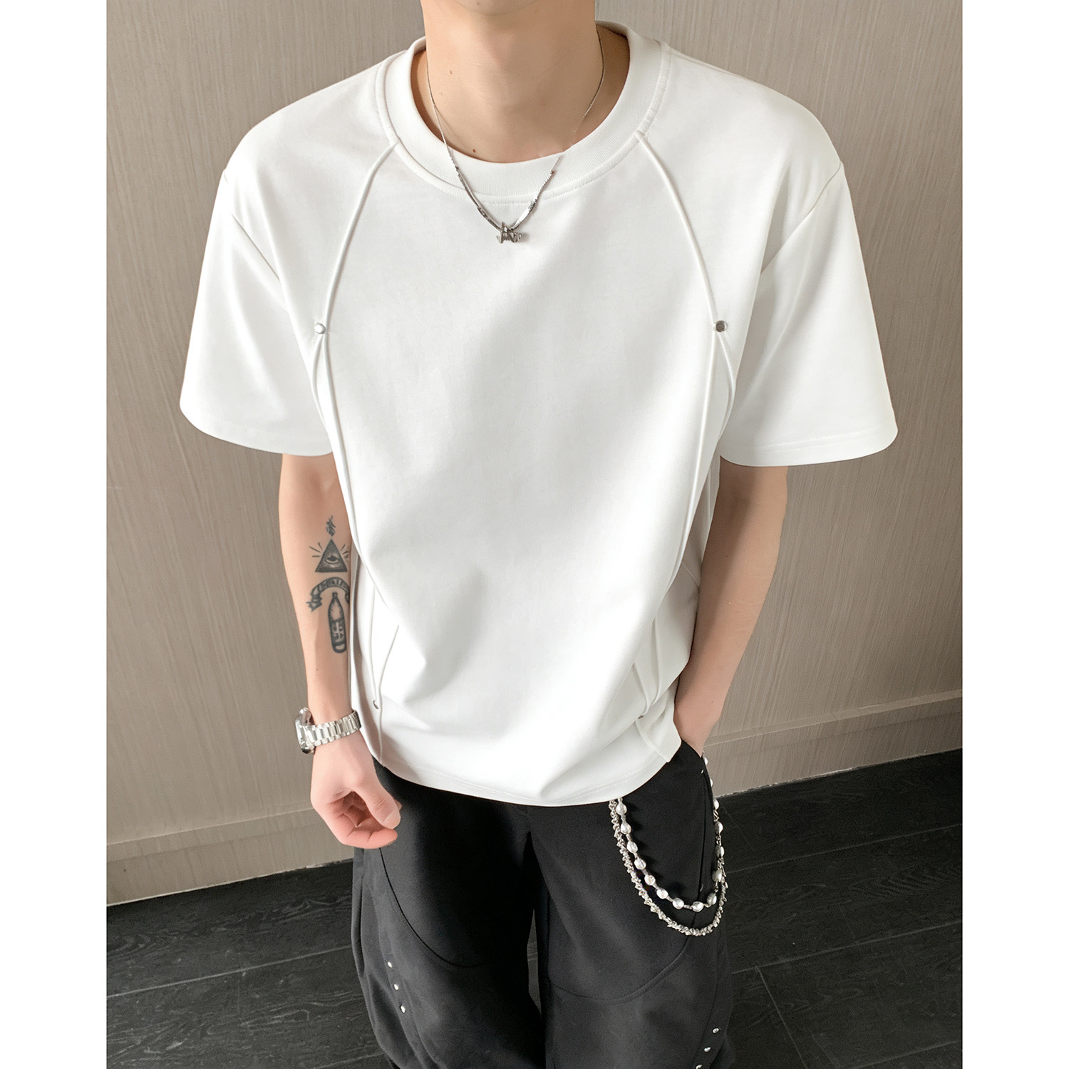⭐小红书推荐⭐DT2605 T恤男 白色麂皮绒铆钉显瘦短袖 P16,所属T恤分类,由淘宝网挑选推荐!小红书抖音网红同款!哪里有卖DT2605 T恤男 白色麂皮绒铆钉显瘦短袖 P16和多少钱质量怎么样✅。