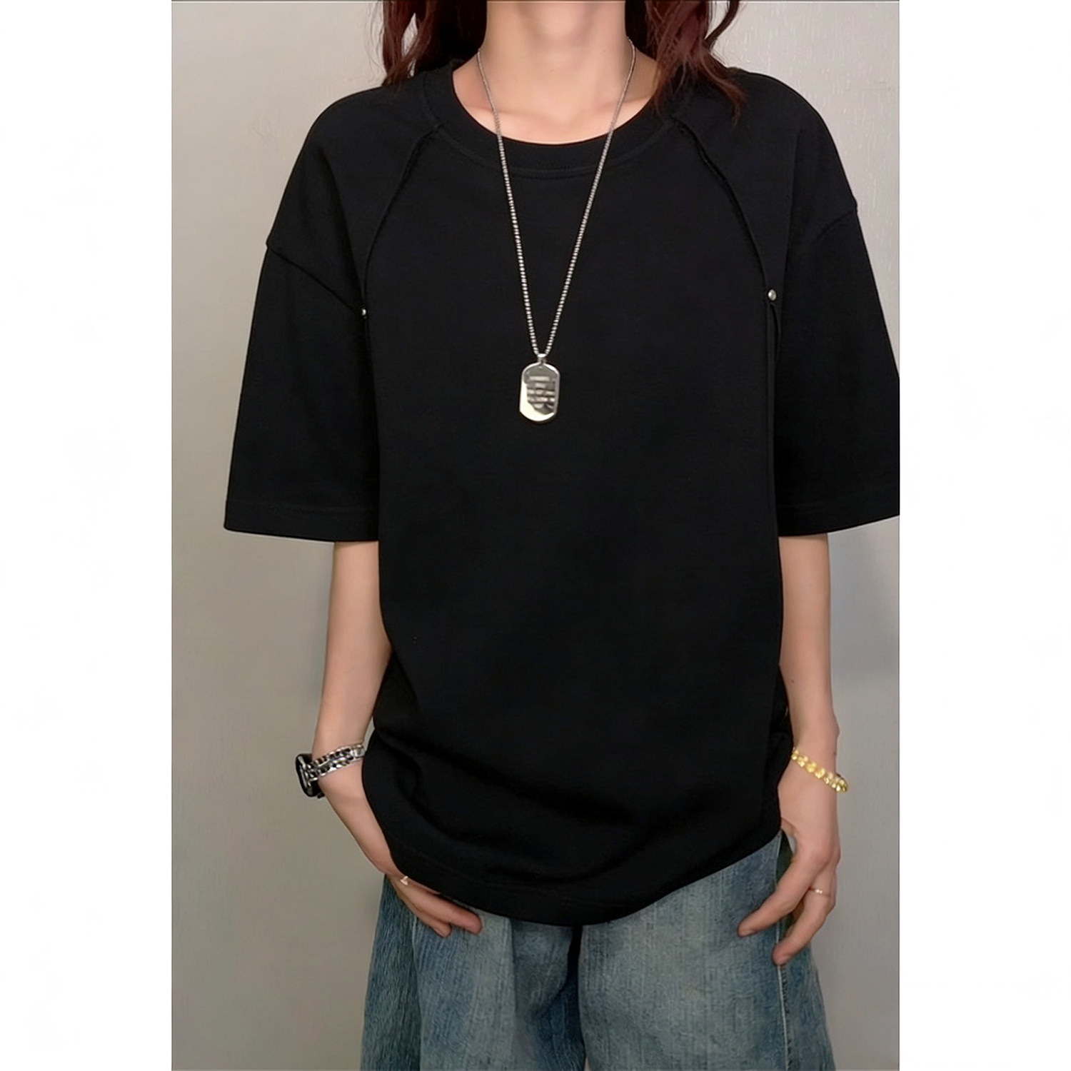 t恤男女基础款 纯色oversize打底白色TEE 重磅纯棉短袖 小尼力bf美式