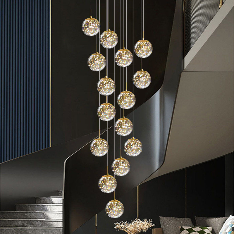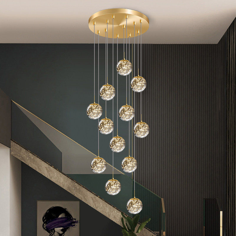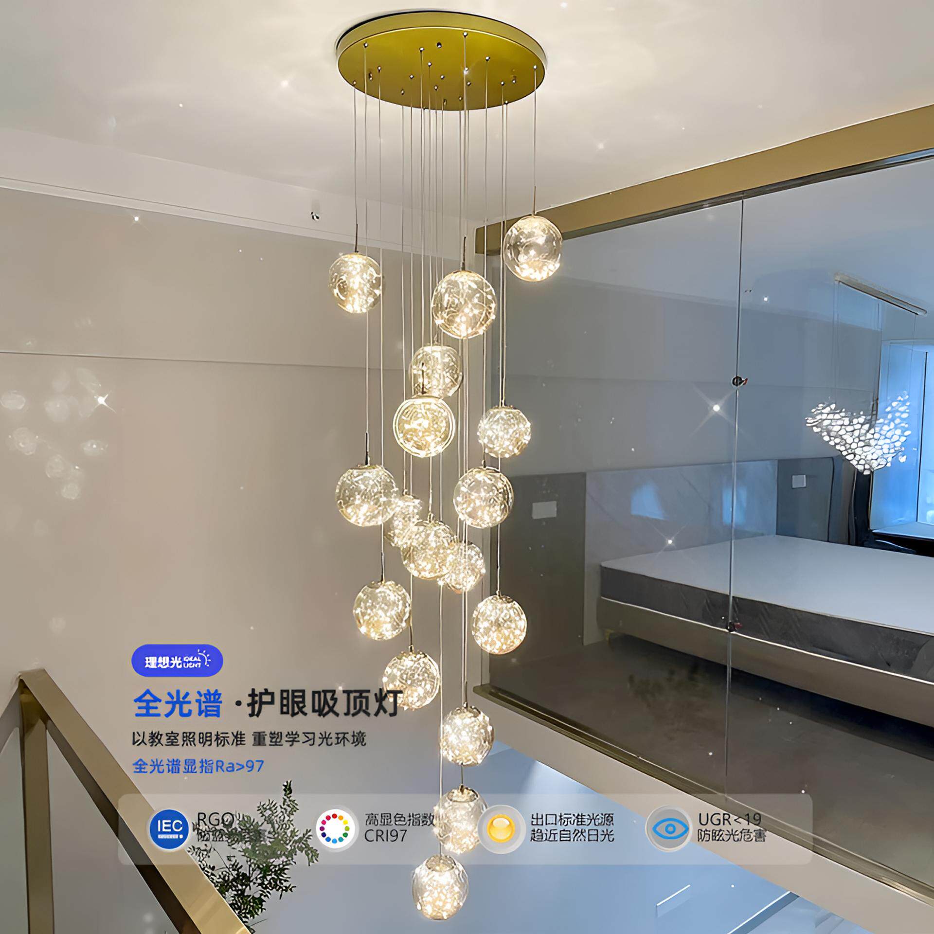 楼现代简约轻奢别墅loft公寓客厅大吊灯 满天星楼梯井灯长吊灯复式