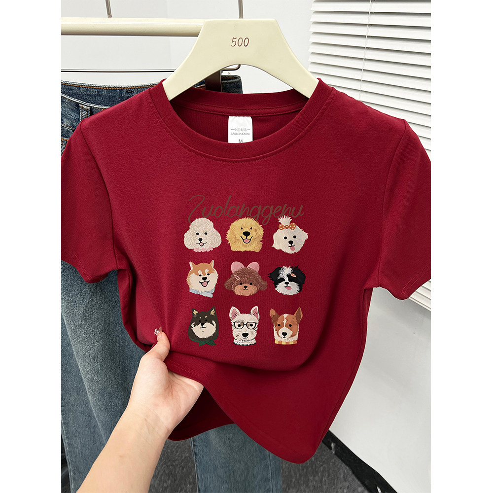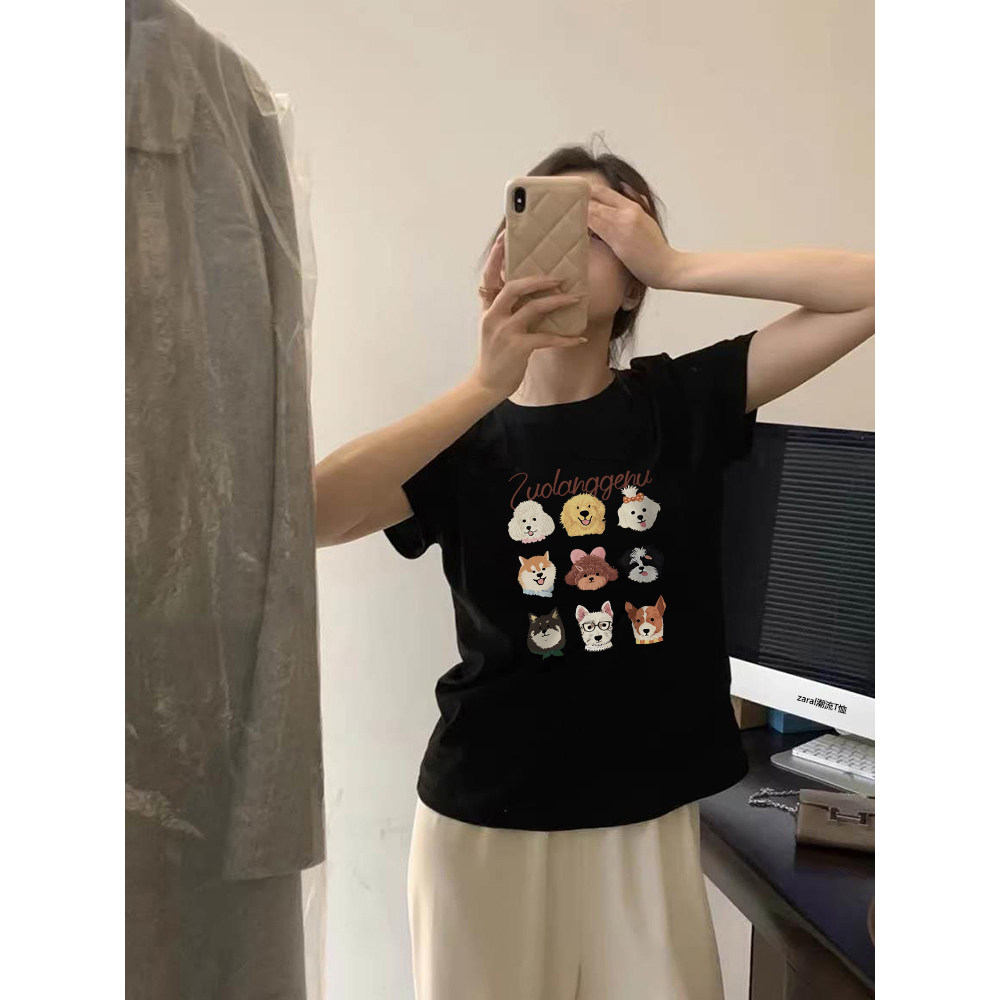 t恤女2026夏季 时尚 卡通动物印花大码 微胖正肩短袖 圆领上衣潮 新款