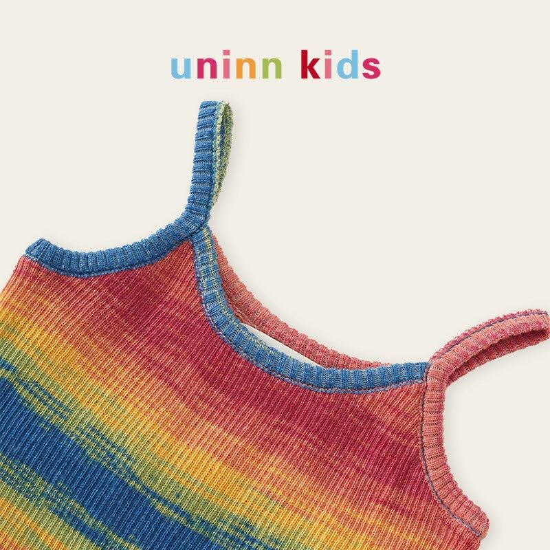 森系儿新款 夏季 uninn女童彩虹吊带背心连衣裙针织早初春两件套装由