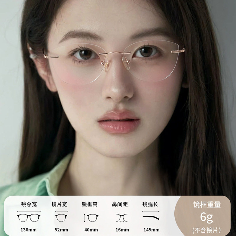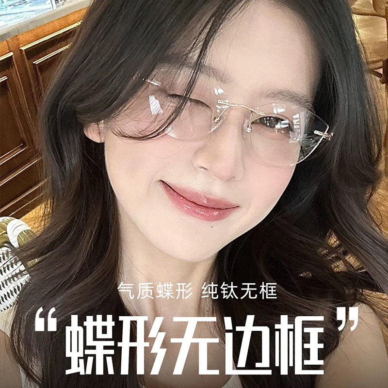 无框眼镜女高级感近视可配度数防蓝光无边框高智感纯钛架 许妍同款