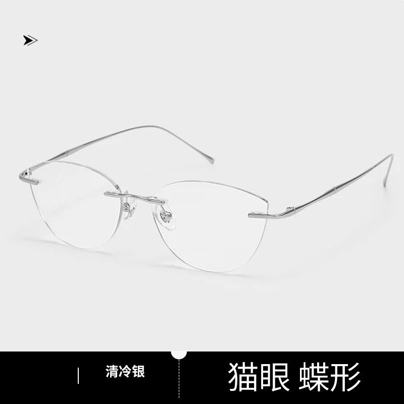 纯钛超轻无边框平光配度数丹阳632 无框猫眼蝴蝶眼镜框女2026新款由