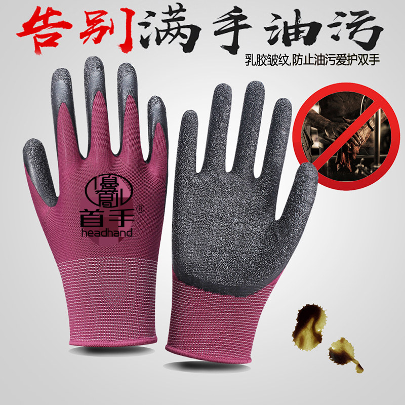 手套工作劳保耐磨加厚劳动乳胶橡胶劳工防护干活工地浸胶防泼水
