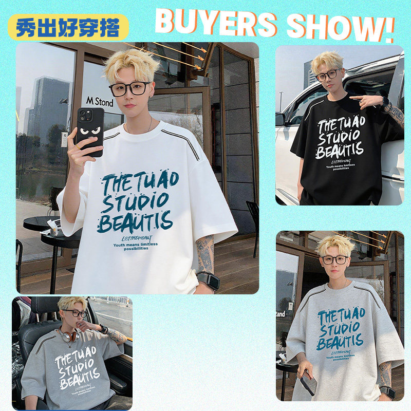 半袖 纯棉重磅潮牌印花短袖 上衣1 宽松美式 新款 T恤衫 男女夏季