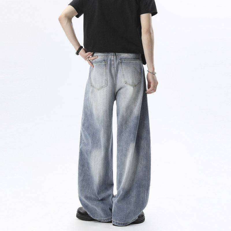 美式 Kuvine春夏季 宽松阔腿水洗牛仔裤 男款 子 高街复古直筒休闲长裤