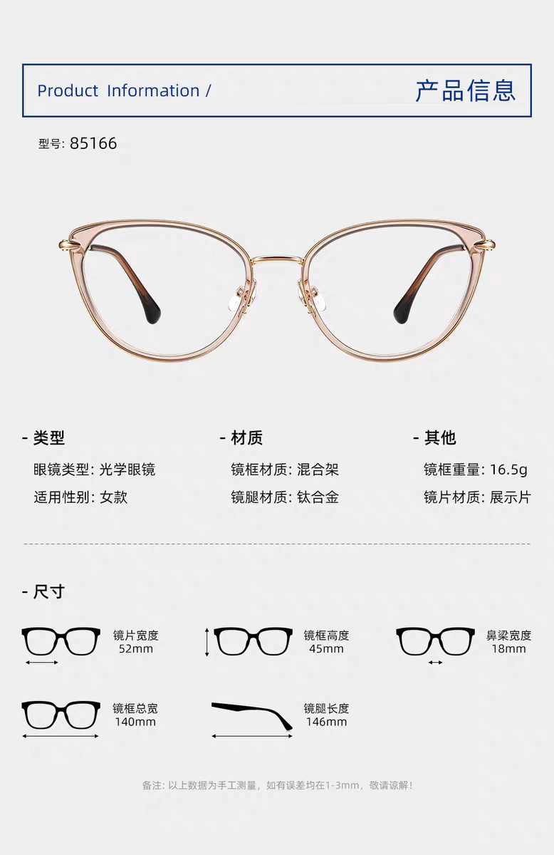 为您提供商品派丽蒙防蓝光高级感素颜神器眼睛镜框女架猫眼眼镜可配度数85167的详细介绍,
