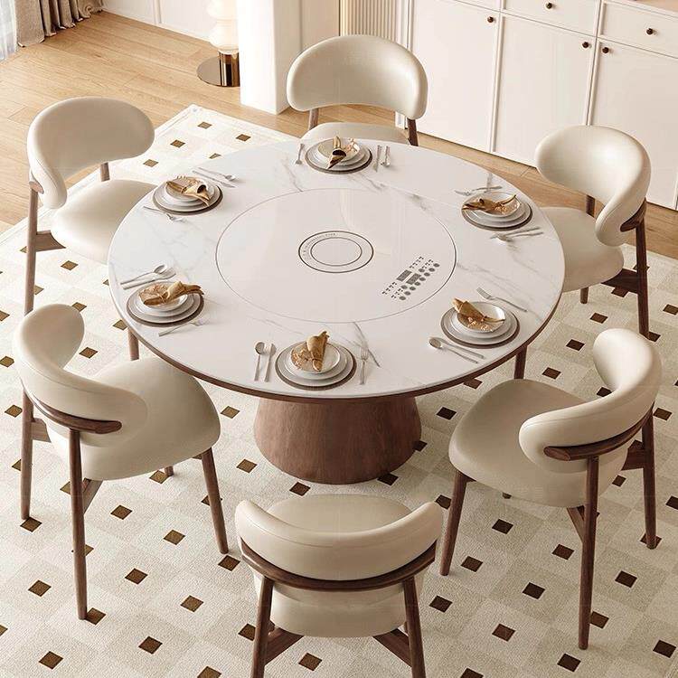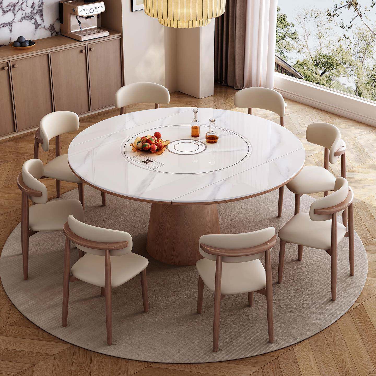 轻奢岩板多功能伸缩餐桌椅电磁炉电动暖菜板可变圆桌饭桌可配转盘