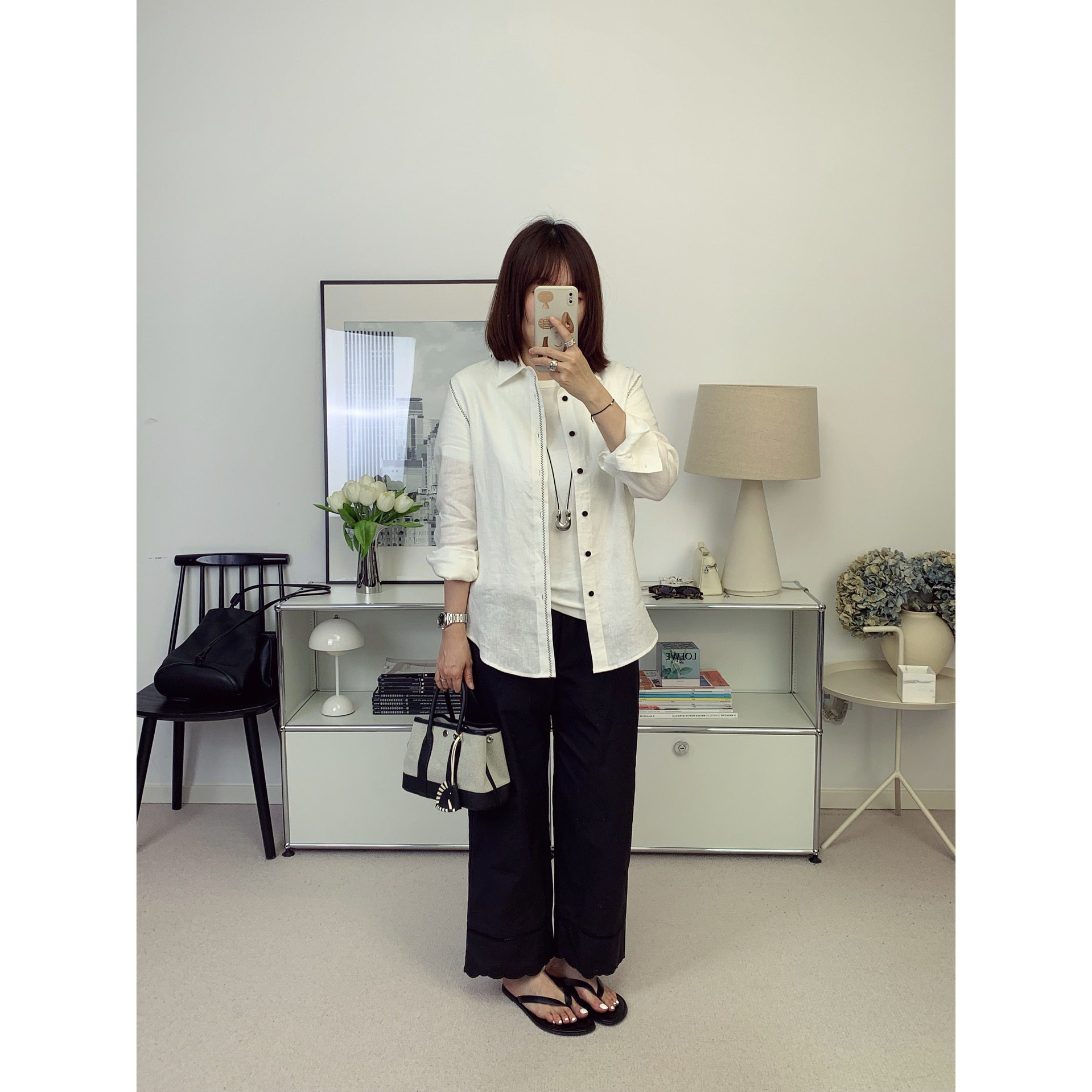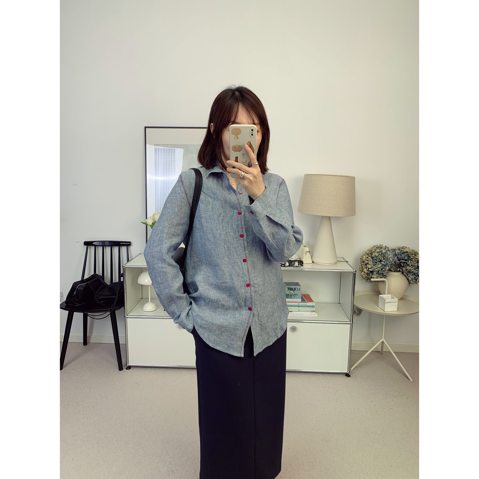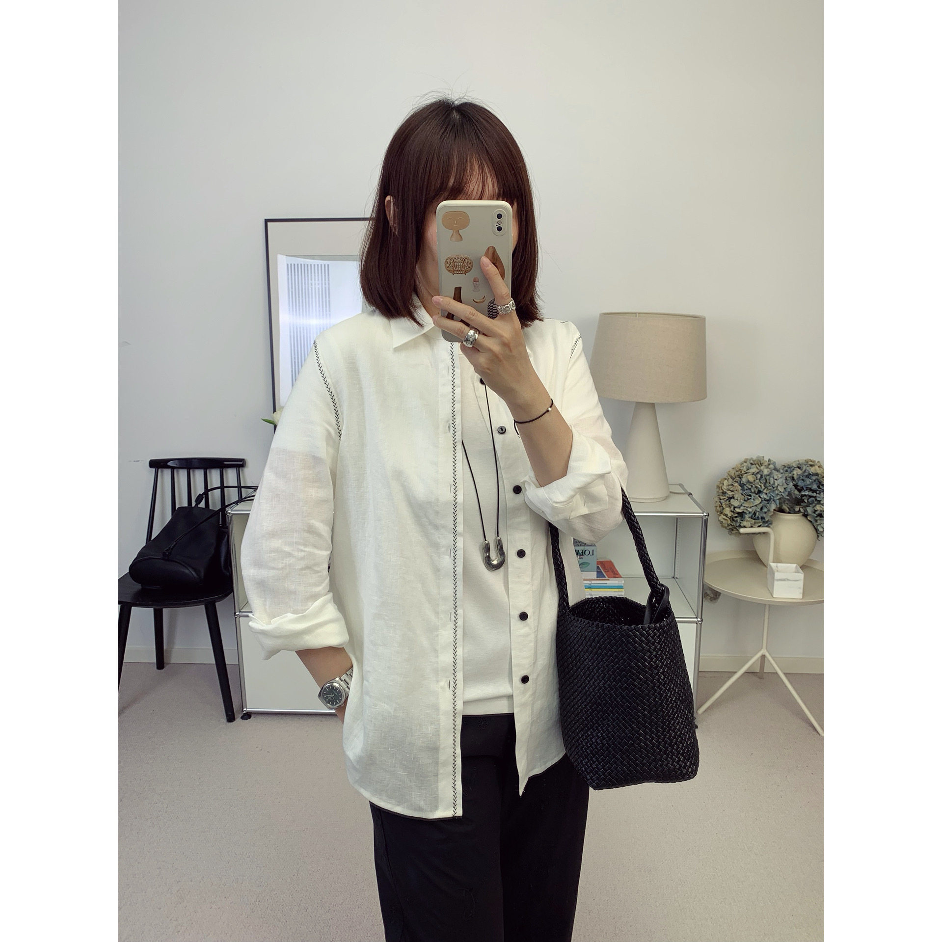 全亚麻麦穗花刺绣亚麻翻领衬衫 26春夏新款 鸬鹚 防晒衫由