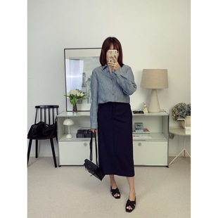 小清新文艺纯棉蓝色条纹衬衫 翻领内搭通勤衬衣宽松上衣外套 女长袖