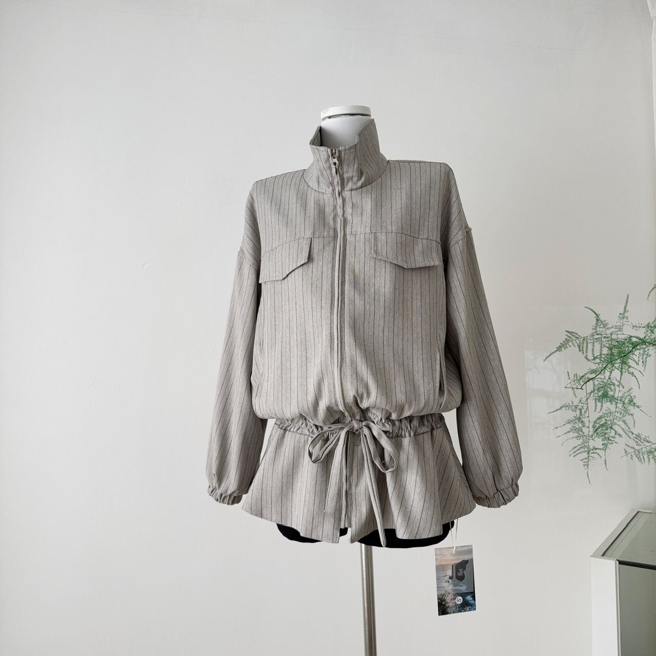 感翻领条纹长袖 春秋季 收腰显瘦时尚 翻领夹克上衣 拉链外套女装由