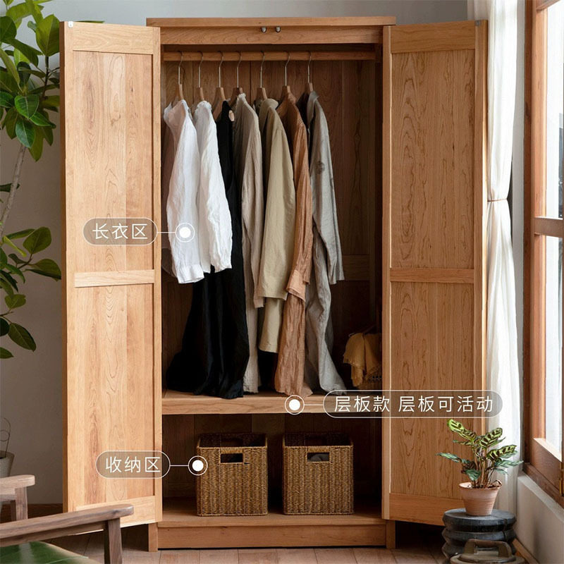 实木樱桃木原木衣柜北欧简约卧室衣橱橡木儿童衣柜格栅收纳柜 日式