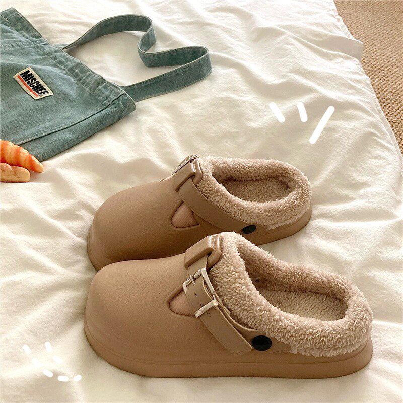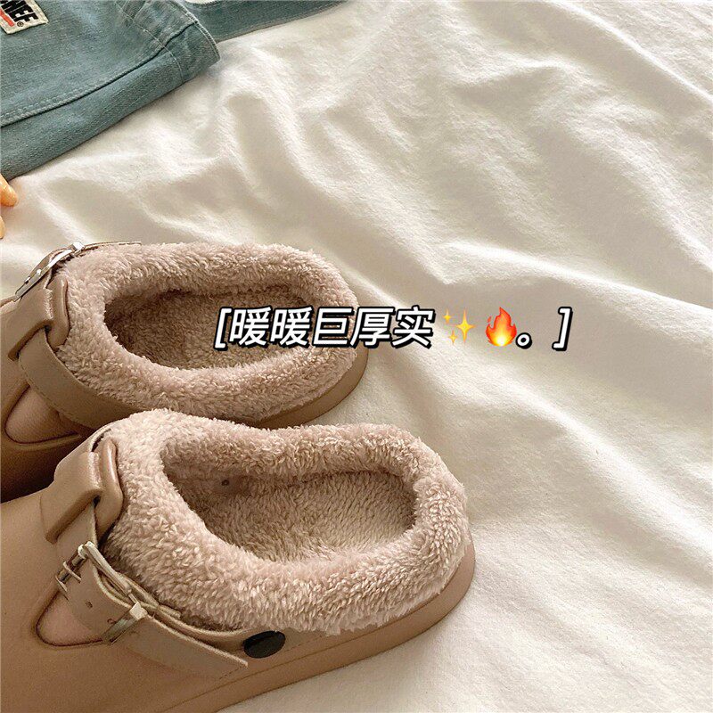 MAROLIO 防水保暖加绒外穿勃肯拖鞋 女冬季 厚底毛毛棉拖 奶里奶气由