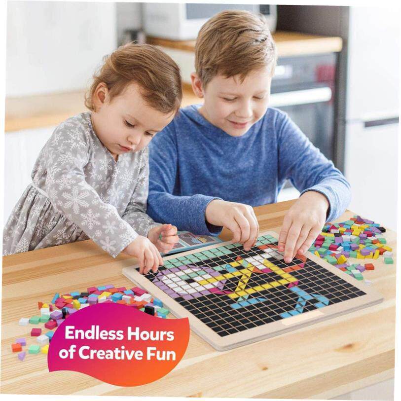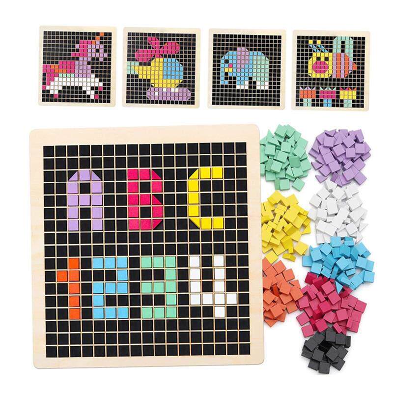 370PCS Board Wooden Puzzle Blocks Pixel Pattern Mosaic Shape由