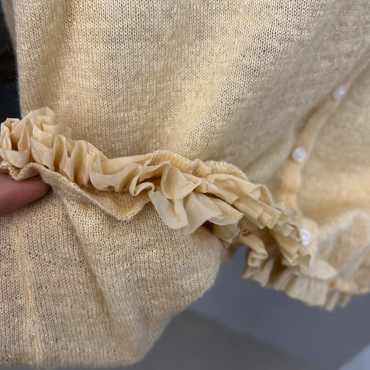 花边针织开衫 外套上衣 甜美拼接娃娃毛衣秋冬新款 蕾丝温柔针织衫