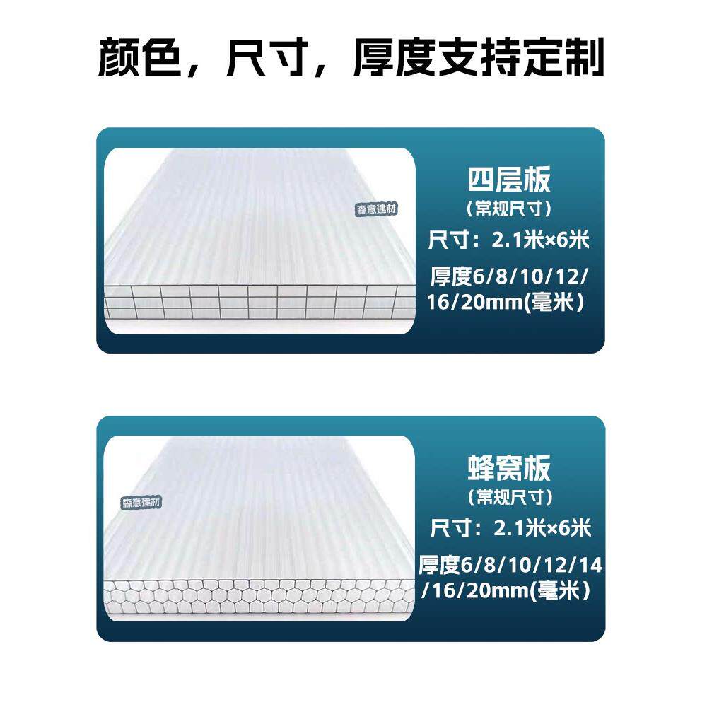 阳光板pc耐力板透明加厚车棚遮阳雨棚隔热蜂窝采光双层彩色中空心