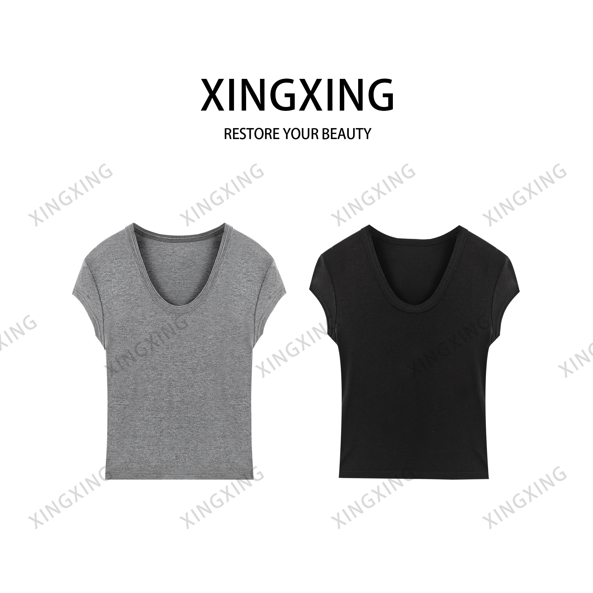 为您提供商品X.x.夏季 设计感U领短袖 T恤女修身 显瘦内搭上衣477 新款的详细介绍,