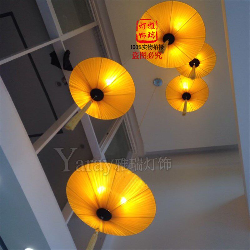 新中式 饰灯茶室饭店圆形简约布艺灯 餐厅吊灯酒店餐饮包厢宴会厅装