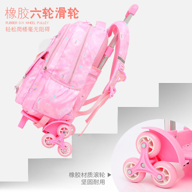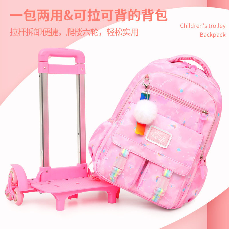 小学生儿童拉杆书包女孩1236年级E可拆卸爬O楼大容量背包男生防水由