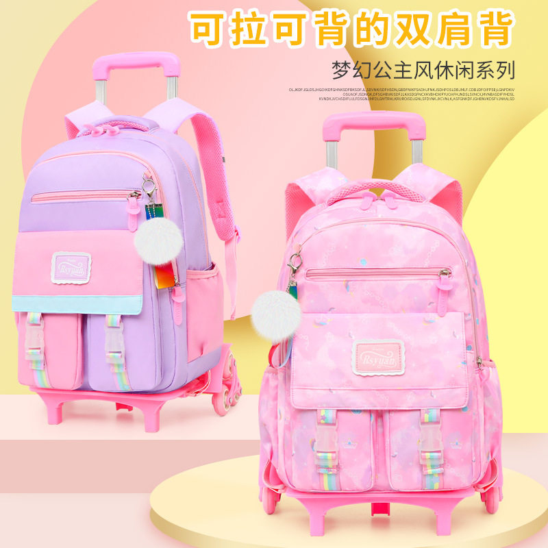 小学生儿童拉杆书包女孩1236年级E可拆卸爬O楼大容量背包男生防水