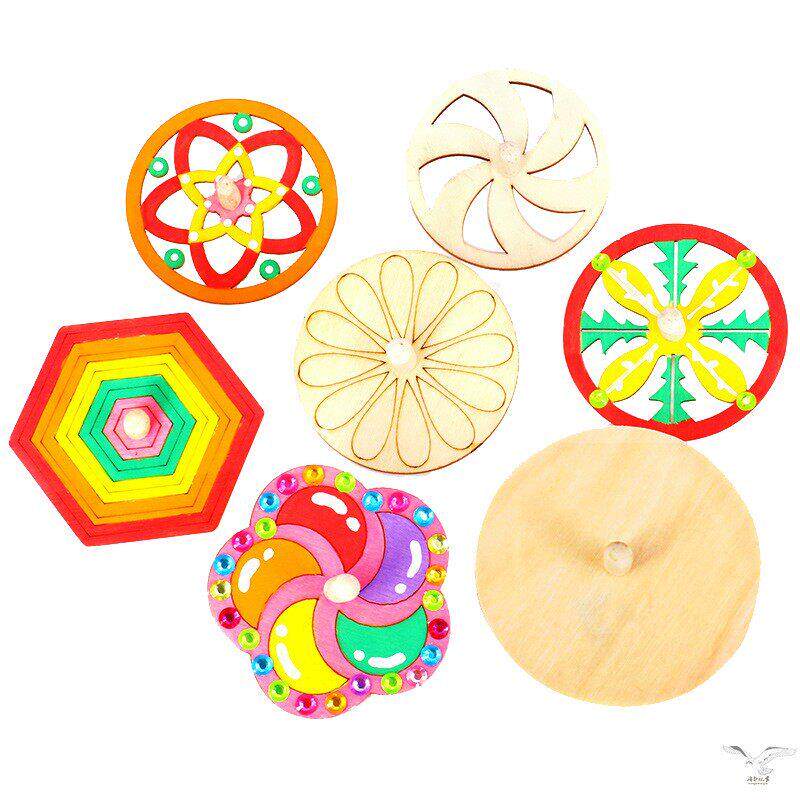儿童创意美术手工diy自绘涂鸦趣味游戏玩具 涂色木制陀螺传统怀旧由
