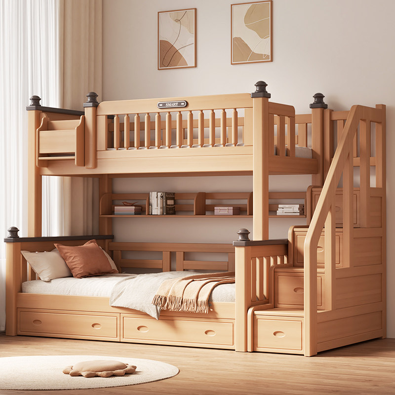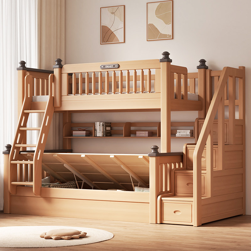 榉木上下铺全实木儿童高低床可拆分子母床大梯柜双层床两层上下床