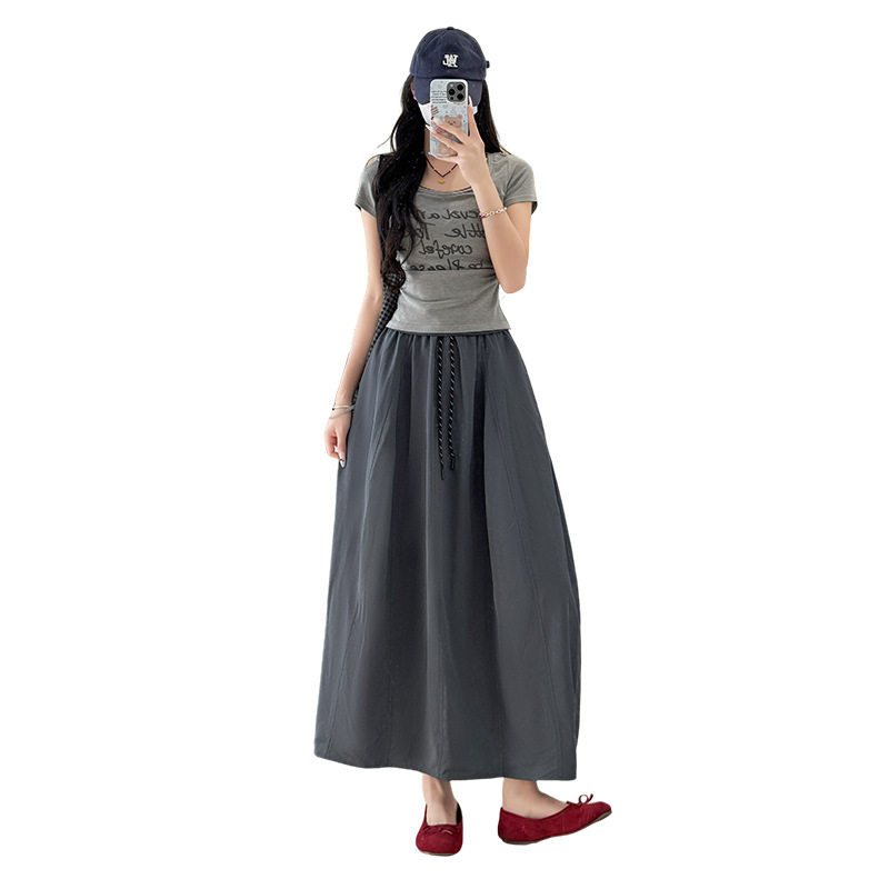 Women Gray Cargo Ice Skirt Silk 2026 Waisted High Spring由