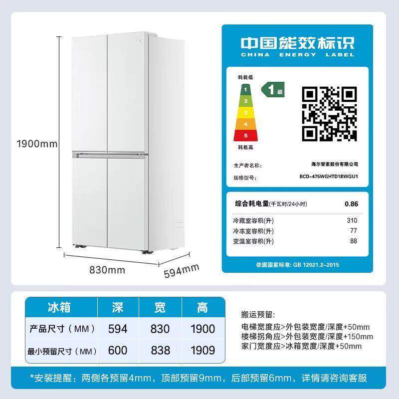 ⭐小红书推荐⭐Haier 海尔BCD 475WGHTD1BWGU1全空间保鲜超薄零嵌白色十字电冰箱,所属厨房冰箱分类,由淘宝网挑选推荐!小红书抖音网红同款!哪里有卖Haier 海尔BCD 475WGHTD1BWGU1全空间保鲜超薄零嵌白色十字电冰箱和多少钱质量怎么样✅。